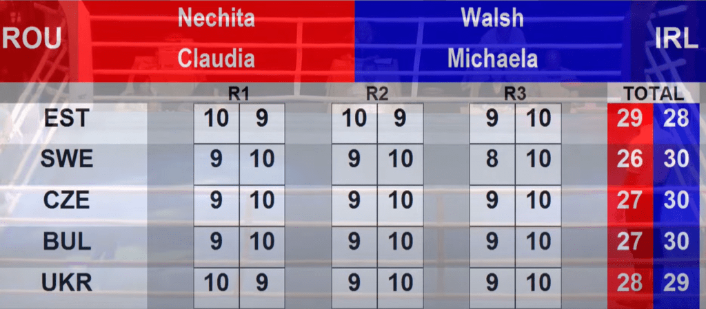 Claudia Nechita a plătit prețul boxului într-o singură dimensiune și a abordării exclusiv frontale cu șarje de lovituri, care n-au mai funcționat în fața unei pugiliste cu superioritate fizică, reflexe bune și ieșiri în lateral. Apărarea adversarei ei a făcut ca marea majoritate a atacurilor Claudiei să eșueze și să se finalizeze în aer. S-a stins și fizic pe măsura trecerii timpului, cu fiecare repriză care trecea crescând dominarea irlandezei Walsh și diferența dintre ele pe cărțile de arbitraj, așa încât ultimul gong avea să consfințească o înfrângere amară dar fără drept de apel.