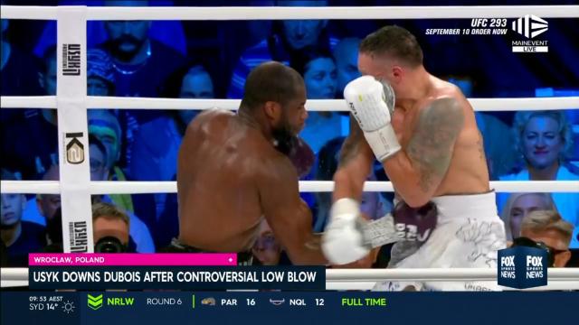 Pe o ploaie mocănească și pe un ring umed, despre care specialiștii noștri în fotbal ar fi spus că avantajează sportivul mai puțin tehnic, Oleksander Usyk a început mai bine meciul, controlându-l pe Dubois cu un jab foarte precis care l-a atins din toate unghiurile posibile punându-i în evidență rigiditatea și reflexele întârziate. Din repriza a treia, Dubois începe să țintească spre corpul ucraineanului cu lovituri de forță și în debutul rundei a cincea un croșeu upercutat pe sub brațele lui Usyk îl pune pe acesta la podea. Arbitrul de ring Luis Pabon stabilește repede că a fost o lovitură joasă și îi dă campionului timpul necesar de revenire. A fost momentul de cumpănă și totdată controversă a partidei.