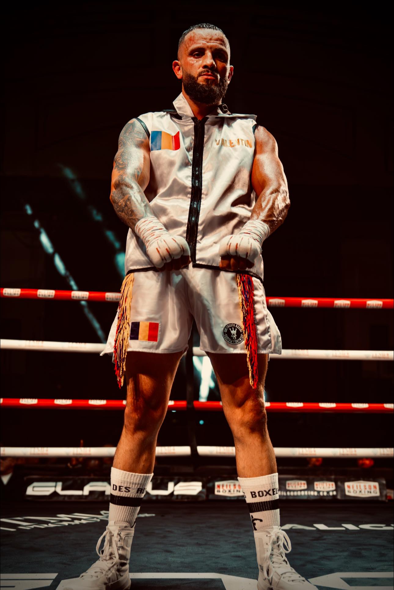 Pentru că este om al faptelor, “aplică ceea ce predică“, luptând cu succes în ringul britanic de box profesionist, acolo unde competiția este necruțătoare.