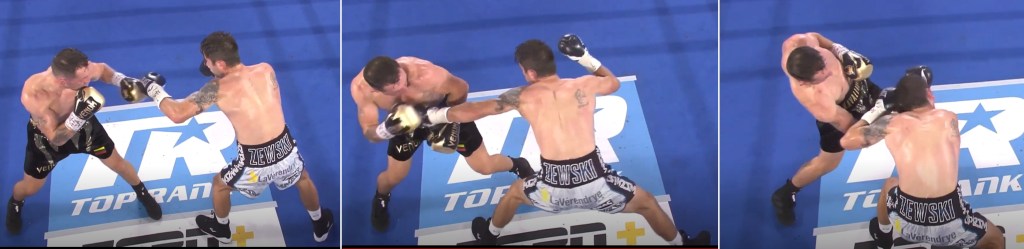 Procedeu puțin obișnuit, să răspunzi la jab cu croșeu de stânga. O mișcare periculoasă având în vedere că cel puțin în teorie, directa de dreapta cu care ai putea fi prins, bate croșeu tău de stânga. Dar cu un timing perfect, mexicanul Oscar Valdez (28-0-0) a dovedit că poate fi o lovitură eficientă, producându-i lui Jayson Velez (29-7-1)  primul knockdown din meciul disputat la sfârșitul săptămânii trecute.
